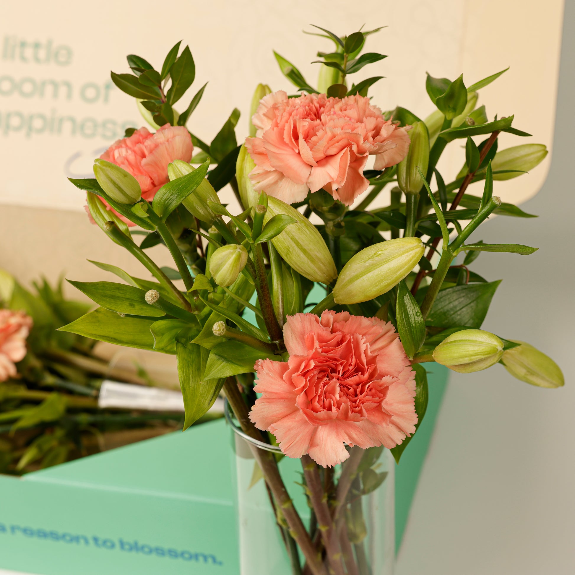 A Blyskt Gift Flower Box that refuses to whisper when it could speak. Carnations and lilies converge in soft, commanding tones—a pairing that channels admiration, transformation, and unapologetic joy.